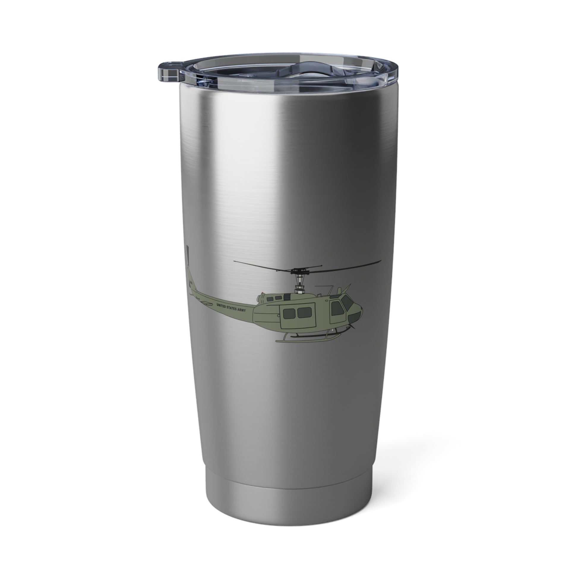 Travel with style using the Hippy's Goodness 71st Aviation Company 20oz Travel Coffee Mug, celebrating Army Vietnam Aviation with the UH-1 Iroquois.